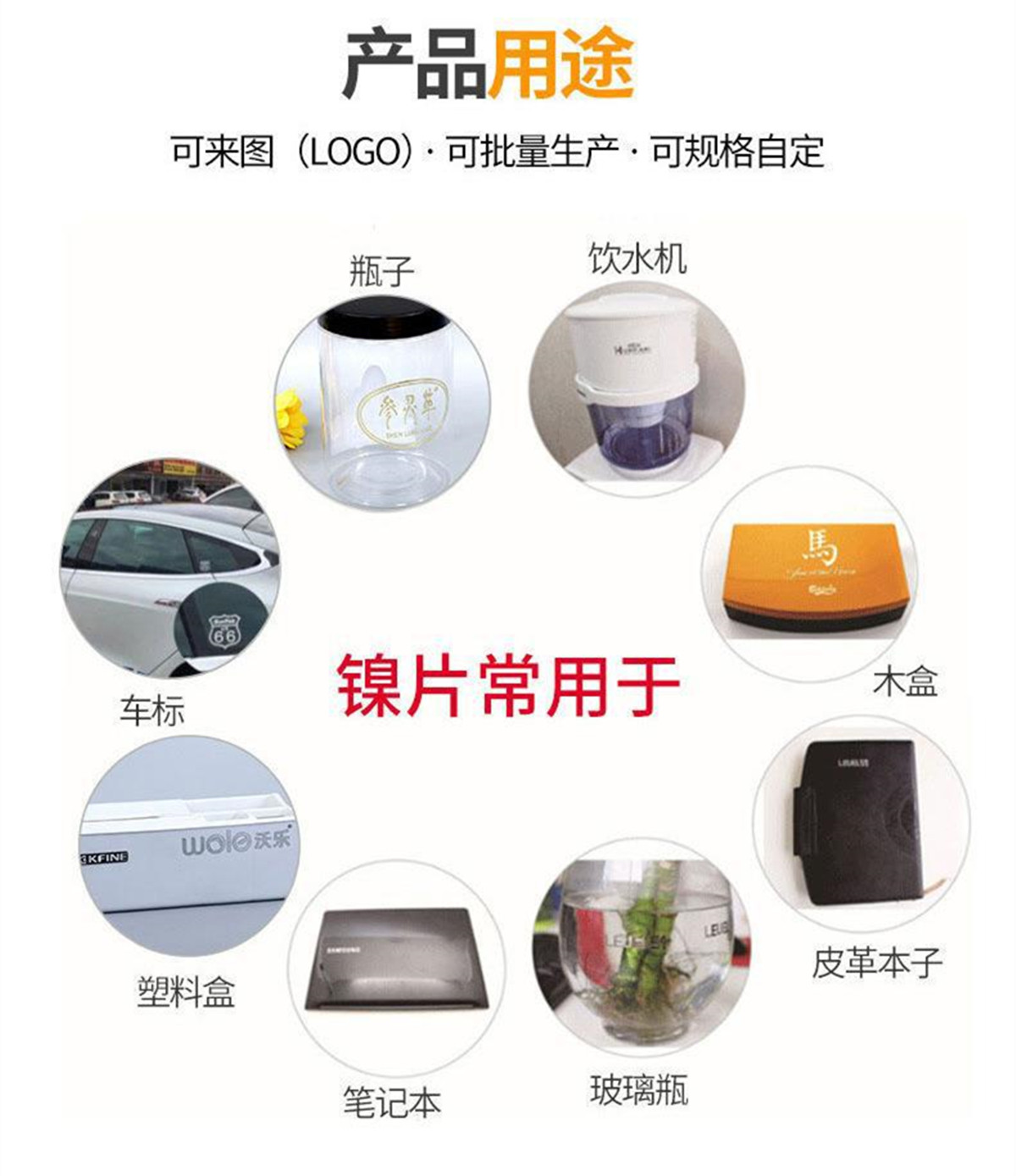 【应用范围】:镍标的应用领域非常广泛,主要应用于电子数码产品、家用电器、皮具、礼盒包装、移动电源、手机壳、运动器材等。